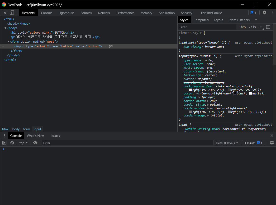 name, vulue 값 모두 button으로 되어있는 점이 뭔가 수상합니다.